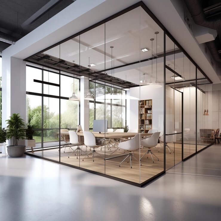 Elegant and space-saving slim glass partition solutions for modern interiors.